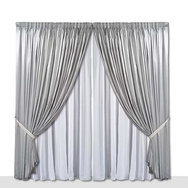 | DESCRIZIONE: La sopratenda è uno shantung color grigio cangiante; la sottotenda è un voile liscio color bianco. |