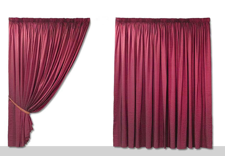 DESCRIZIONE: Il tendaggio proposto è in taftà stropicciato cangiante color bordeaux.
