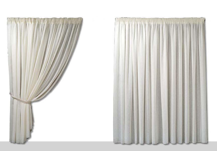 | DESCRIZIONE: Il tendaggio proposto è in bisso effetto lino color avorio. |